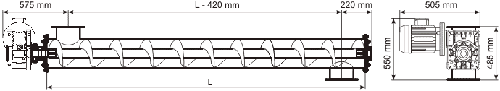 Конвейер тип А может быть изготовлен длиной от 1000 до 6000 мм. Конвейер тип Б изготавливается длиной от 1000 до 5000 мм. В стандартном исполнении винтовые конвейеры (шнеки) производства ИТП «Техприбор» выполняются: тип А- 5000мм, тип Б- 3000мм.