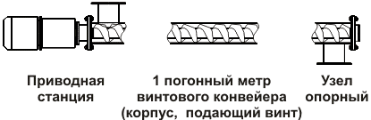 | Тип конвейера | Приводная станция* | Погонный метр винтового конвейера | Узел опорный |